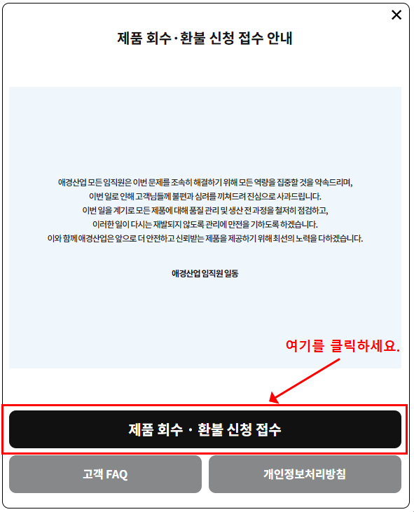 리콜 대상 제품을 보유하고 있다면, 아래 절차를 통해 전액 환불 및 무료 회수를 받을 수 있습니다.