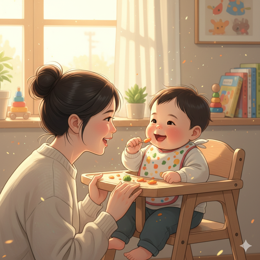 - 난장판을 즐기세요: 아이가 음식을 던지거나 으깨는 것도 탐색 과정입니다. 이 시기의 자유로운 탐색이 창의적인 뇌를 만듭니다.